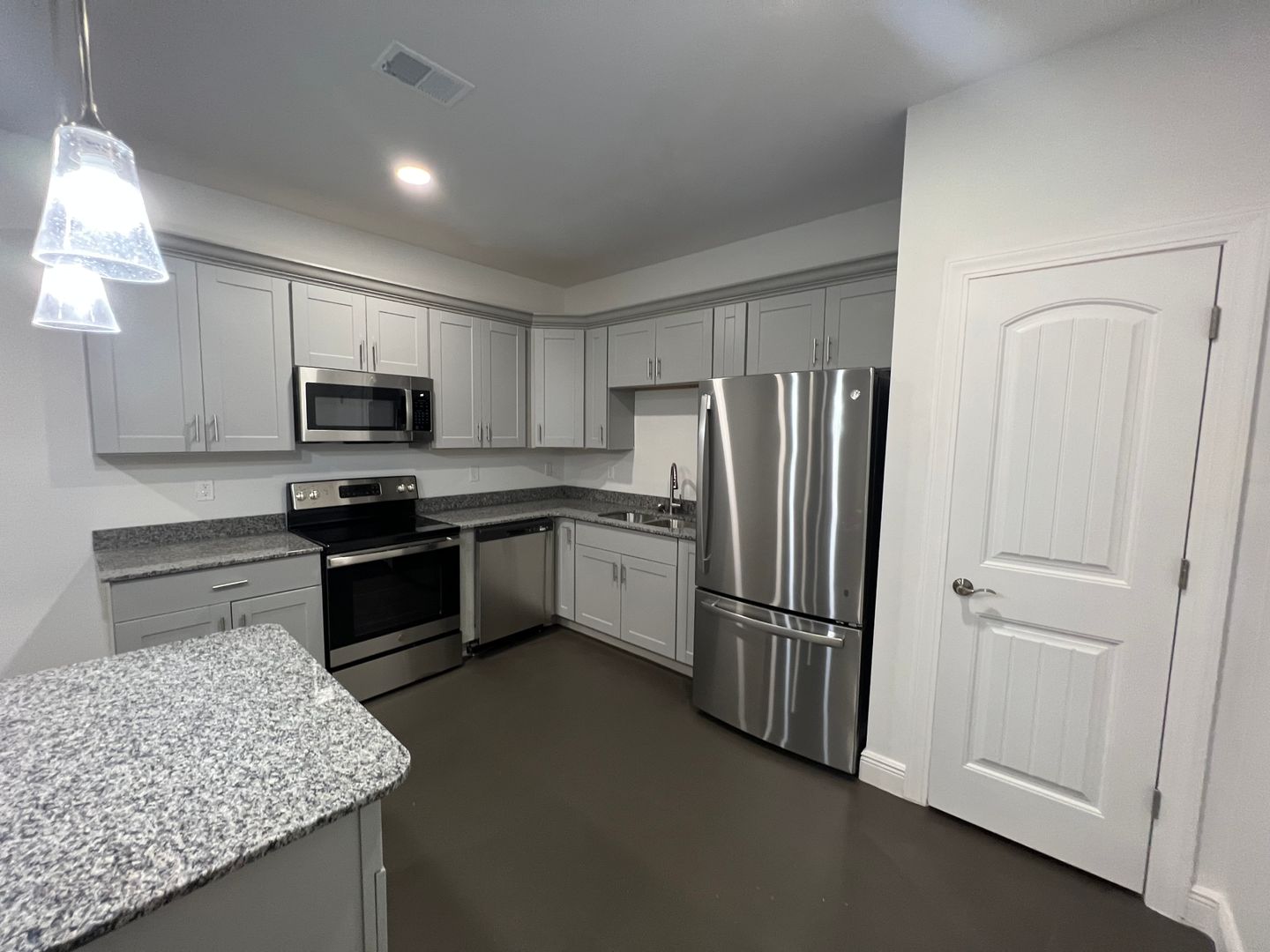 2 bedroom and 2 full bathroom custom apartment. Open floor plan, features living room, dining area and kitchen with island. Granite counter-tops, laundry room in each apartment. Water, sewer and trash is included.